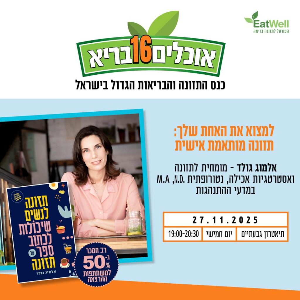 אלמוג גולד מומחית לתזונה ואסטרטגיות אכילה, נטורופתית N.D. M.A במדעי ההתנהגות, מחברת רב המכר "תזונה לנשים שיכולות לכתוב ספר על תזונה"